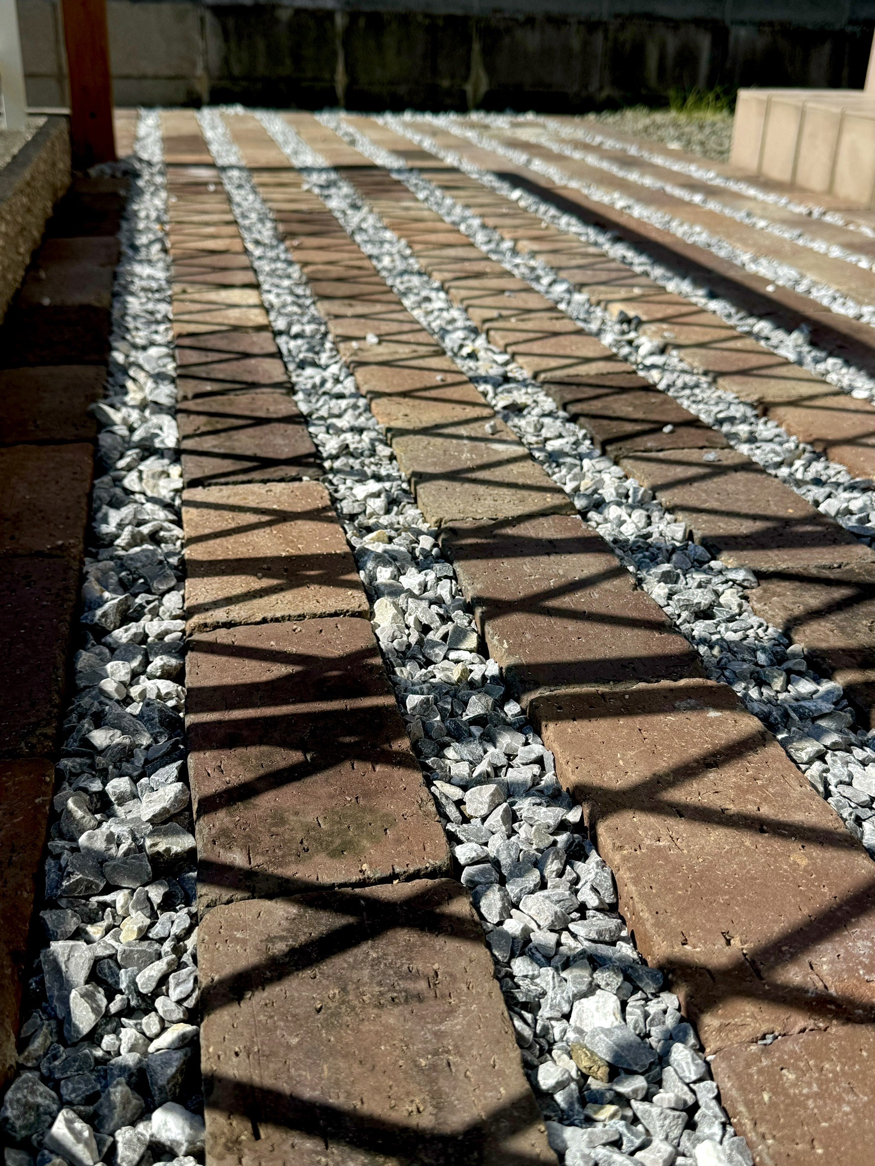 高台解体工事、駐車場ブロック設置・砂利敷き・防草シート・枕木設置、仕切り板設置、境界化粧ブロック設置、フェンス移設工、ローラーウォール、照明、植栽工